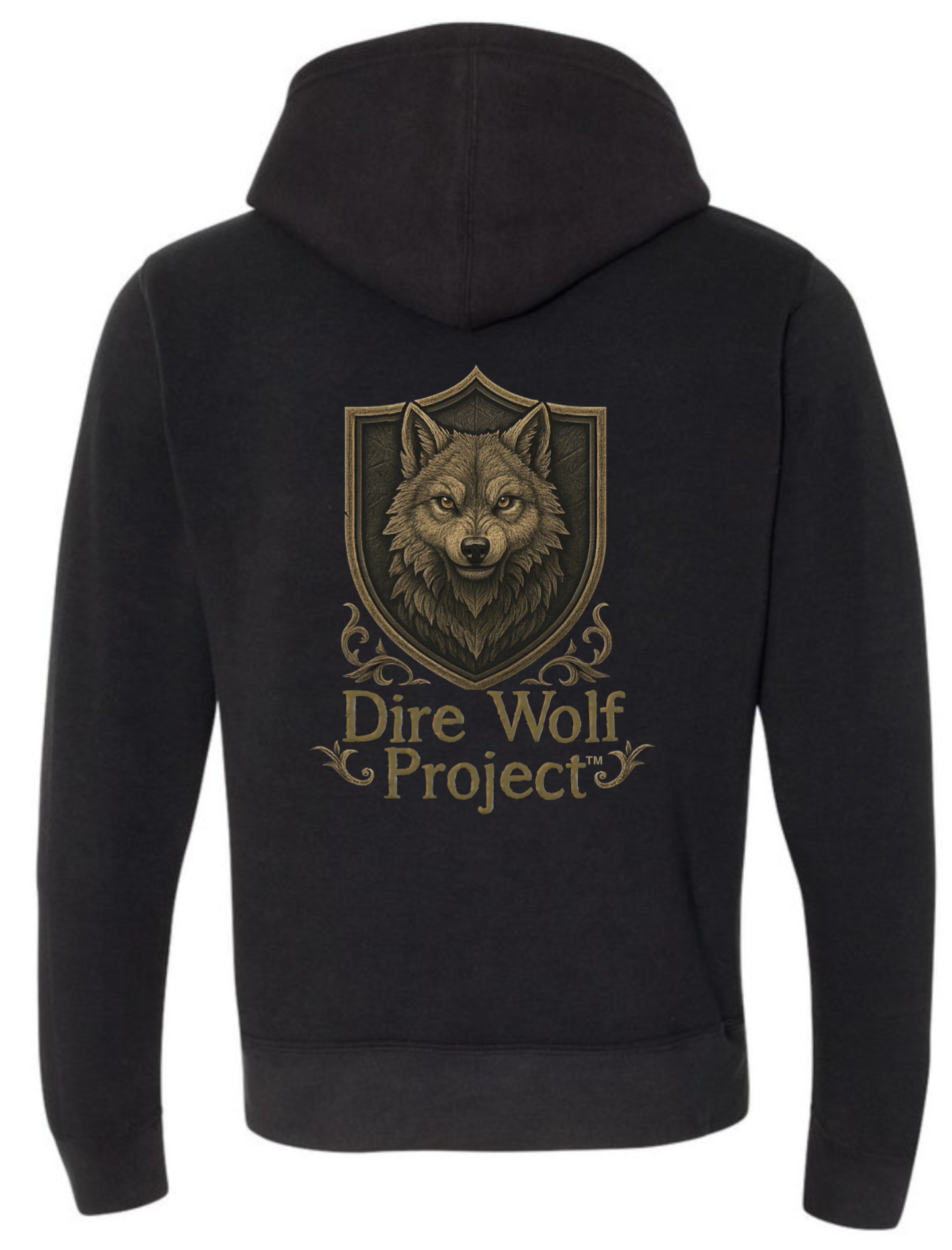 And yes, this design carries the heart of the Dire Wolf Project™ within it. The American Dirus™ isn’t shown as a cartoon, a mascot, or a novelty. It stands as a crest. The mark of a guardian and an emblem of protection, discipline, and pack-first loyalty.